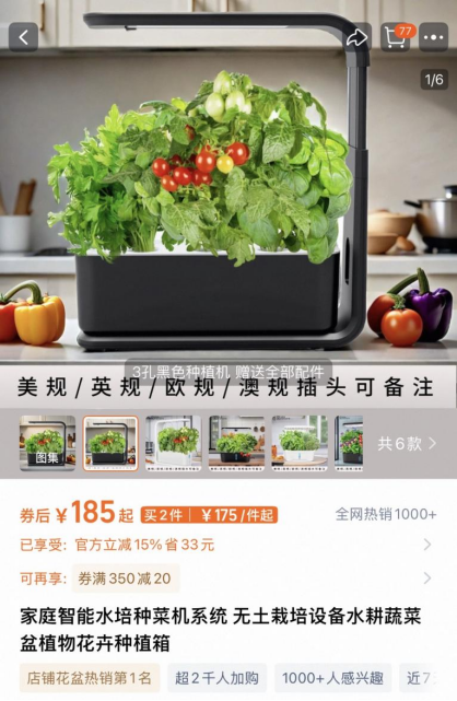 需求催热市场。哈尔滨道外区花鸟市场今春蔬菜种子销量看涨。“小白菜、樱桃萝卜、小葱这类速生叶菜种子卖得最好,西红柿、黄瓜苗也抢手,”一位店主介绍道。迷你农具、专用土、乃至自动灌溉补光的“智能种植箱”成新宠。某平台券后185元起的智能水培机显示“热销1000+”