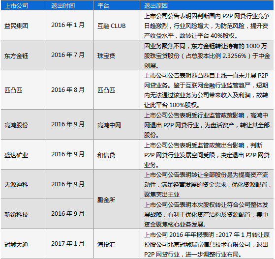 其余上市公司退出网贷行业,原因也无外乎于上述两点。