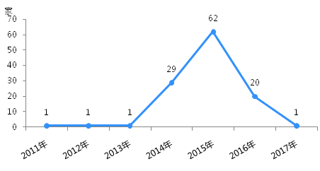事实上,上市公司入股P2P网贷平台主要集中于2014年、2015年。其中,2015年有62家P2P网贷平台被上市公司入股,这一数字在2016年大幅下滑至20家,2017年仅余1家。