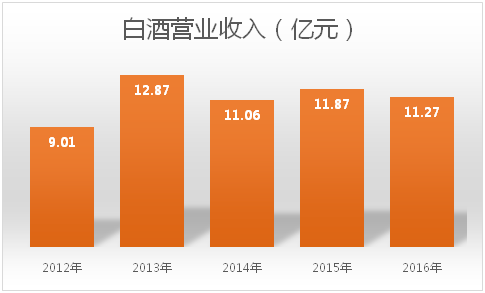丰联酒业的经营也并非那么理想。据上市公司公告,其白酒营业收入近几年一直徘徊不前: