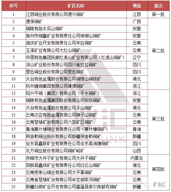 目前主营铜矿的绿色矿山共有25座,云南最多,拥有6座!