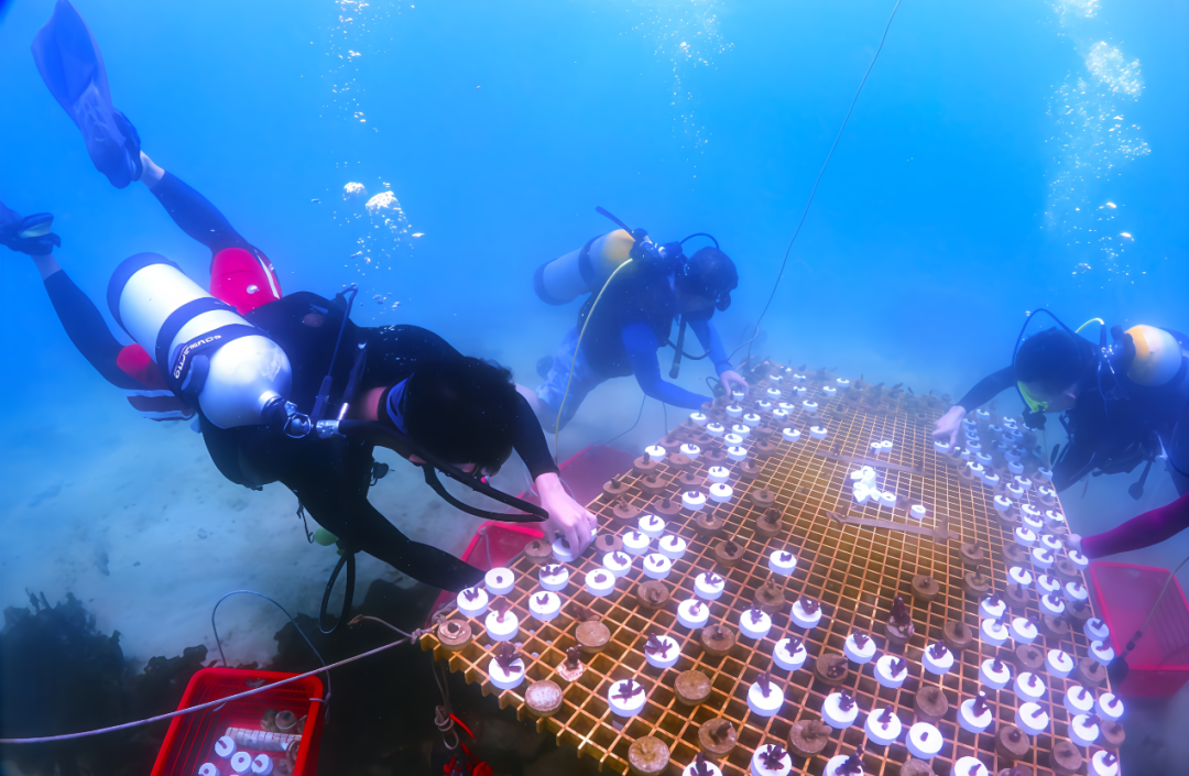潜入海底“植树造林”十年如一日开展珊瑚礁生态修复应用技术研究成功培育超18种10万株珊瑚母株建成国内首个珊瑚保育中心