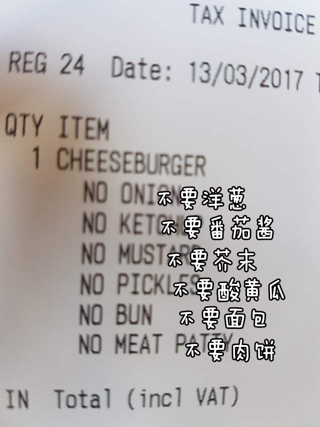 我让他多加一片芝士,以为他会加在汉堡里面的……▼