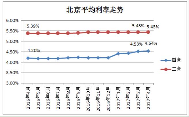 此前,据融360的数据监测,4月份北京地区首套房利率平均折扣为9.27折,平均利率为4.54%。在监测的北京地区30家银行中,有26家银行的首付为3.5成,贷款利率最低的是平安银行的8.5折优惠利率。首套房首付主流为3.5成。4月份江苏银行、天津银行将优惠利率调整至9.5折。二套房方面,主流首付是6成,与3月份持平,最高的是花旗银行的7成。二套房贷款利率稳定在基准利率上浮10%水平。