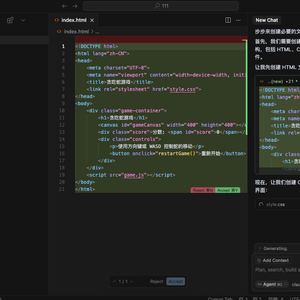 在生成逻辑较复杂的俄罗斯方块游戏时,Trae的响应速度比Cursor快5-6倍。这主要得益于Trae的Builder模式对常见项目结构的预定义,以及AI代码生成的高效优化。