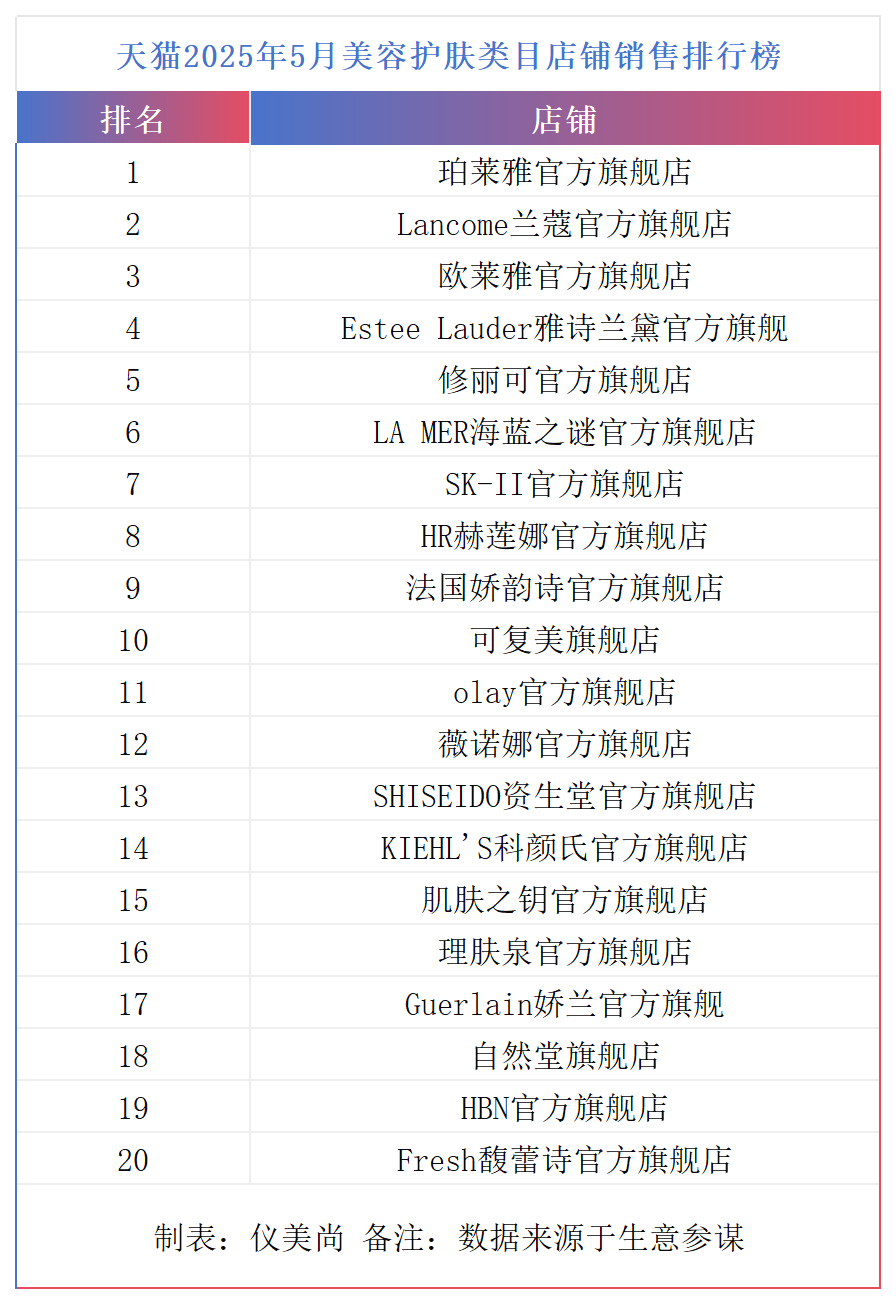 生意参谋后台数据显示,天猫美容护肤类目销售TOP20品牌店铺中,国际品牌店铺占据15席,这其中,TOP2至TOP9之位,均被国际品牌店铺占领。与4月相比,肌肤之钥、Guerlain娇兰和Fresh馥蕾诗为本月新上榜品牌。