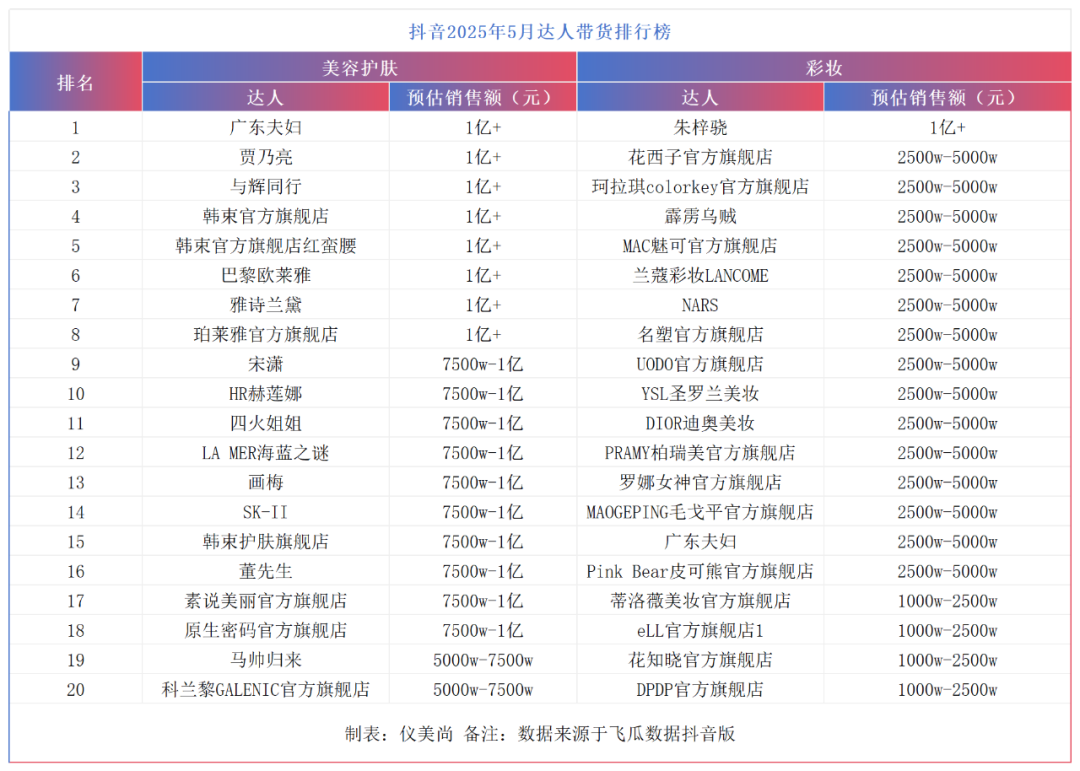 抖音5月份的达人带货榜单,可谓“百花争艳”。