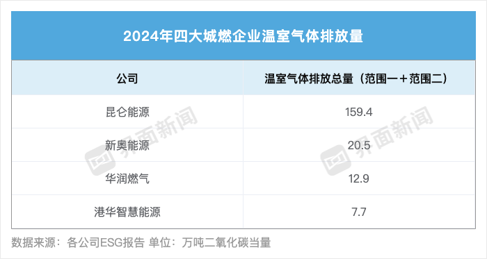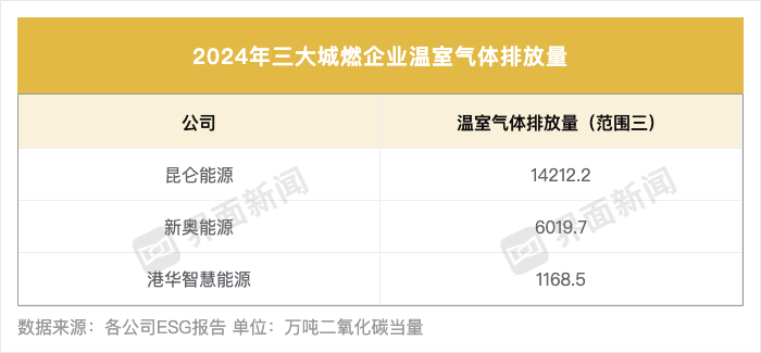 新奥能源和港华智慧能源的范围三排放均突破千万吨。