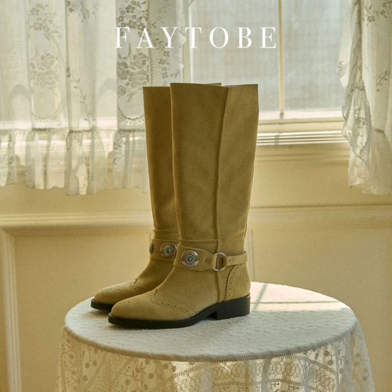faytobe“索玛”堆堆靴秋百搭牛皮西部靴