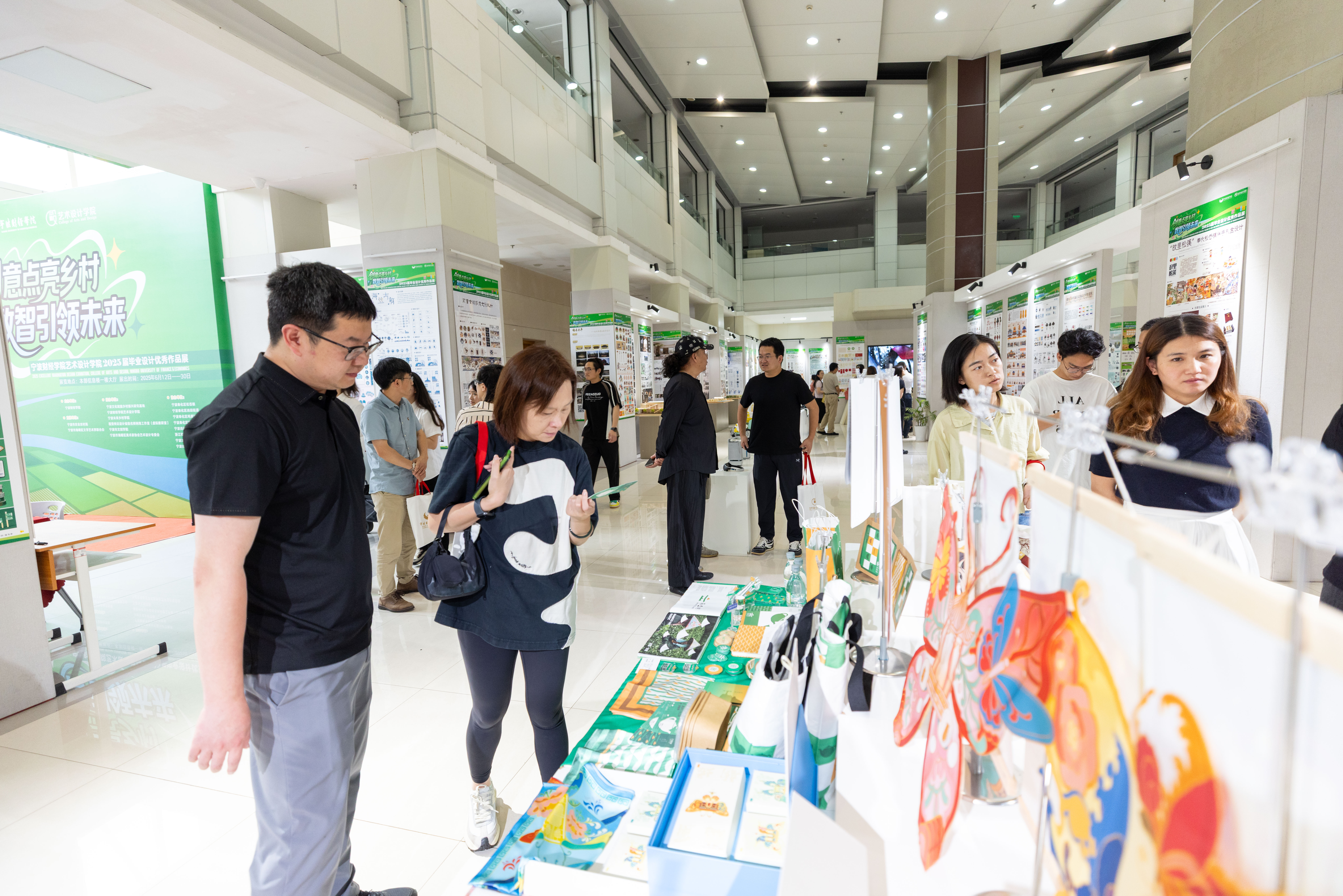当传统乡村文化邂逅前沿数智科技,会碰撞出怎样耀眼的创意火花?6月12日,宁波财经学院艺术设计学院2025届毕业设计优秀作品展开幕,这场以“创意点亮乡村 数智引领未来”为主题的展览,围绕“乡土的温度”与“科创的活力”两大核心要素,精彩呈现了学院视觉传达设计、环境设计、产品设计、工业设计、数字媒体艺术等五个专业的近 100 余幅(组)优秀毕业设计作品。