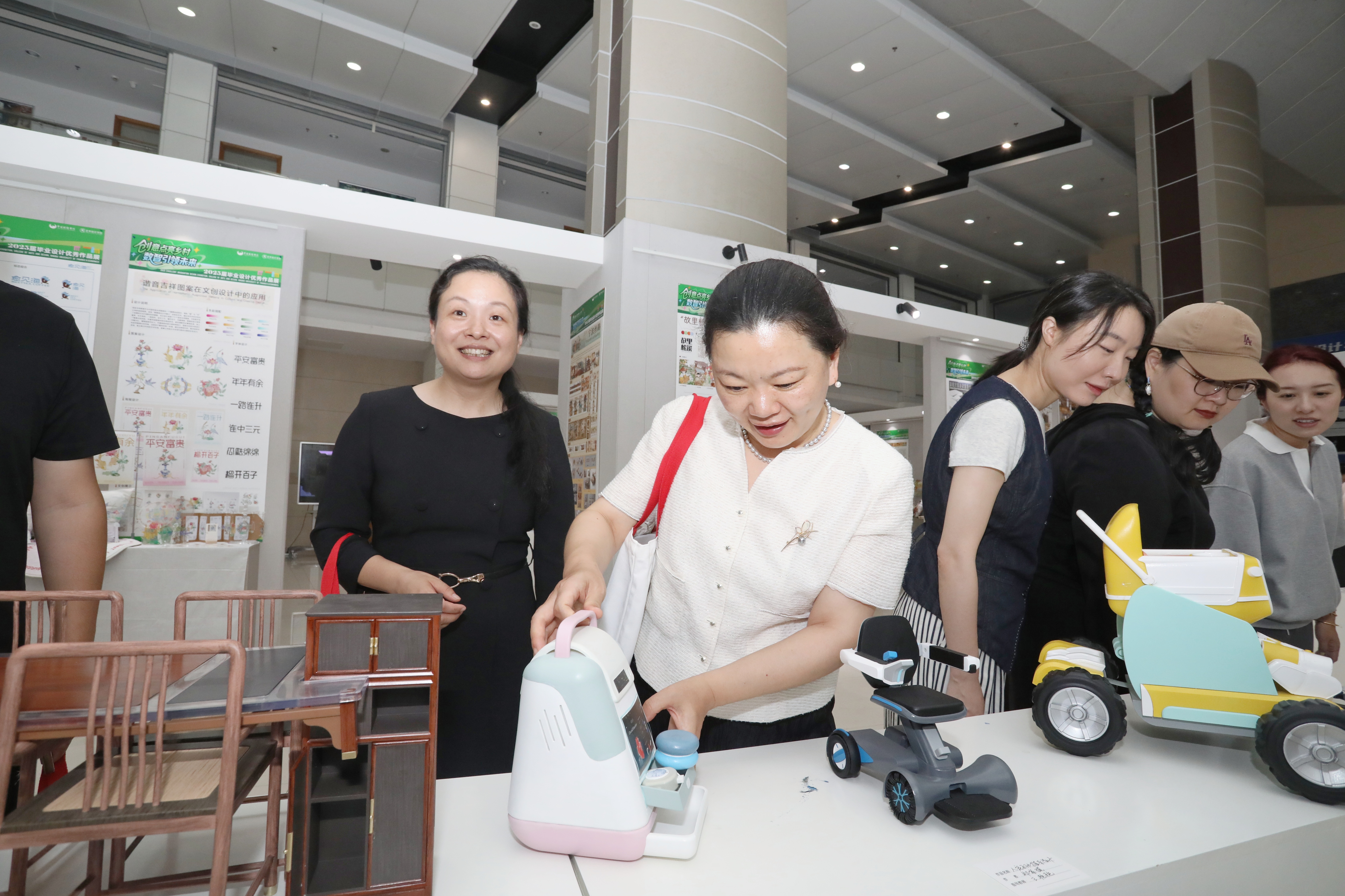 展览现场,还有一家文化创意公司的总经理对学生的创意表现出浓厚兴趣,积极接洽多个文创作品的落地转化事宜,凸显了设计成果的市场价值与应用前景。