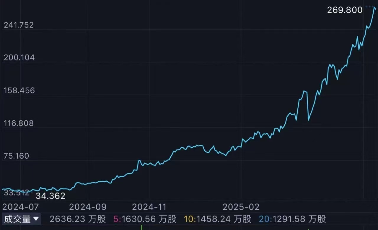 2025年6月12日,泡泡玛特股价冲高至283.40港元,收盘回落至266.8港元,公司市值超过3500亿港元。