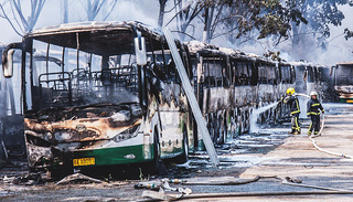 5月1日,正值“五一”节假日期间,位于北京市东苇路西侧的“蟹岛度假村”发生了一起重大火灾事故,停放于该度假村东门附近的停车场数十辆电动大巴车出现连环燃烧爆炸。