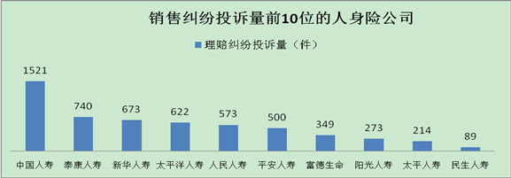 从投诉反映的问题来看,销售投诉是人身险公司最突出的问题。一季度在涉及人身险公司投诉中,销售纠纷6363件,占人身险公司投诉总量的50.92%,主要反映夸大保险责任或收益、隐瞒退保损失等合同重要内容、未尽告知说明义务、营销扰民等问题。