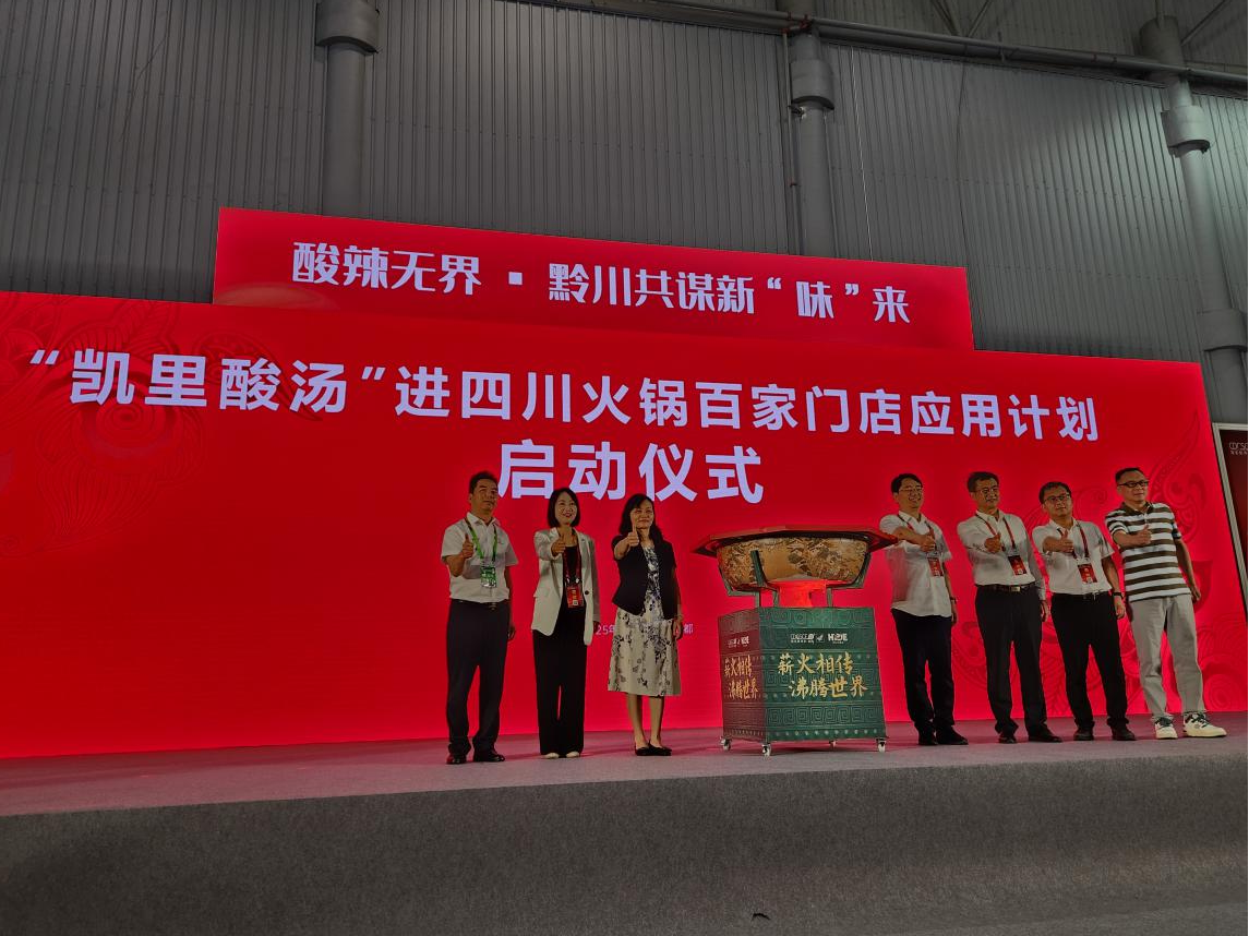 “凯里酸汤进四川火锅”计划成为博览会最大亮点。推进风味革命,贵州酸汤的“酸辣微甜”与四川麻辣碰撞,开发出“酸汤麻辣双拼锅”“酸汤九宫格”等新品,覆盖100+品牌门店;推进供应链协同,建立“川黔酸汤产业联盟”,通过SC认证企业直供、联名厨研发标准化配方,实现风味统一与成本优化;推进消费场景创新,复刻凯里长桌宴,结合苗族歌舞表演,打造“一店一IP”的差异化体验。