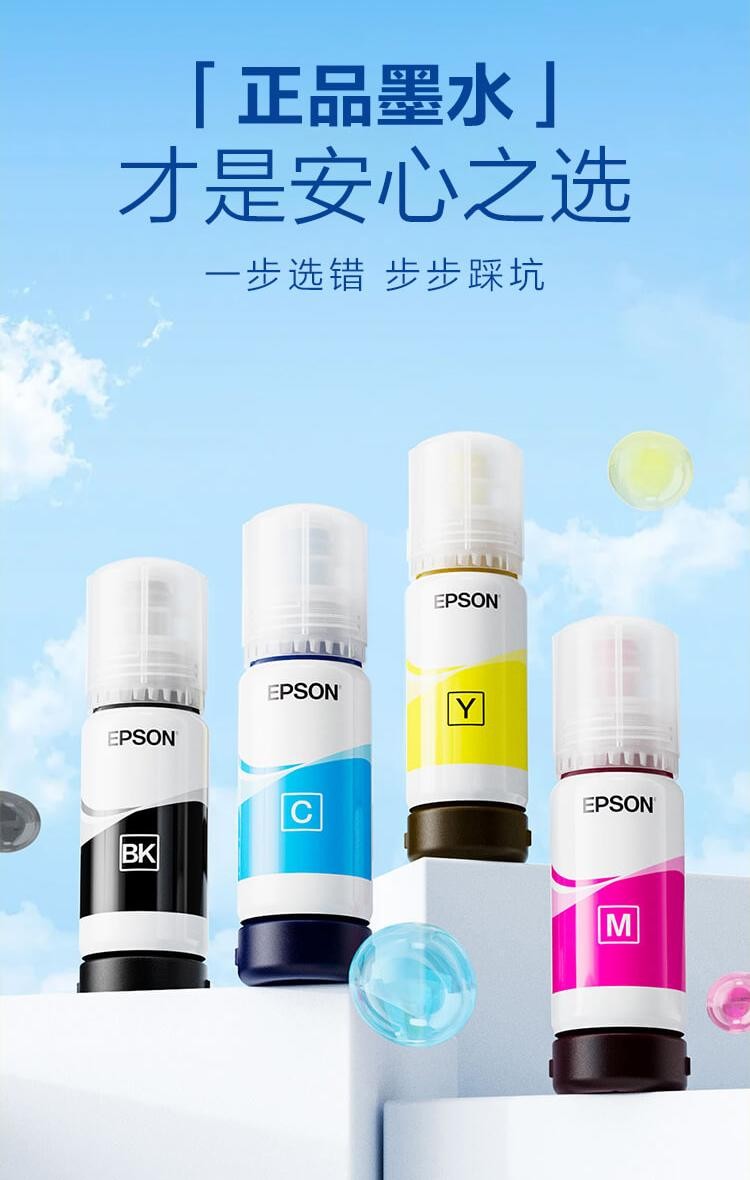 反观爱普生原装正品墨水,产自无尘车间,生产标准严格,确保每一瓶墨水的品质。爱普生选用安全成分制造墨水*1,通过了国内权威机构检测,保障用户使用安全。经精密研发,爱普生原装正品墨水与打印头高度适配不易堵*3,实现丝滑流畅打印体验,保障打印机寿命。同时,正品墨水兼具精准色彩表现力,文件色彩表现更加出色且可长久留色*4,实现专业输出。专利卡口设计*5防漏墨灌错,让用户使用更方便,实现智能识别自动灌墨水,轻松不脏手。更重要的是,选择原装正品可以享受安心售后,保修期内即便设备出现故障,也能获得快速响应和专业维修,真正实现“花钱买放心”。