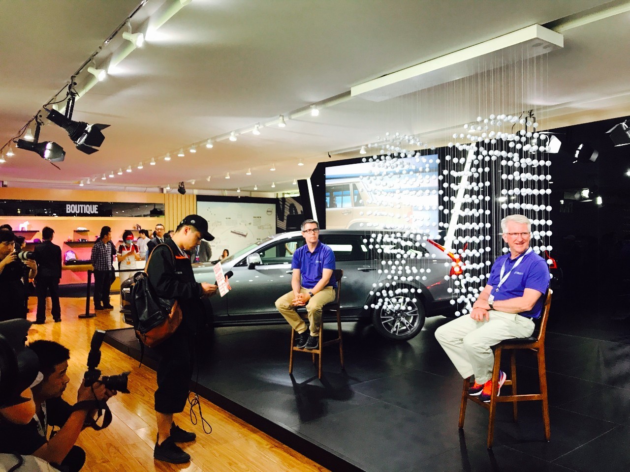 ▼沃尔沃汽车集团全球高级副总裁、北辰汽车(上海)有限公司执行主席拉尔斯·邓(右)与沃尔沃汽车集团亚太区品牌与市场副总裁沈世闻接受媒体采访