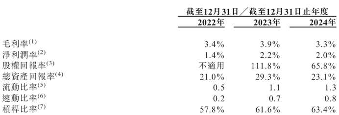 (1)2022年-2024年(报告期内)毛利率分别为3.4%、3.9%、3.3%。