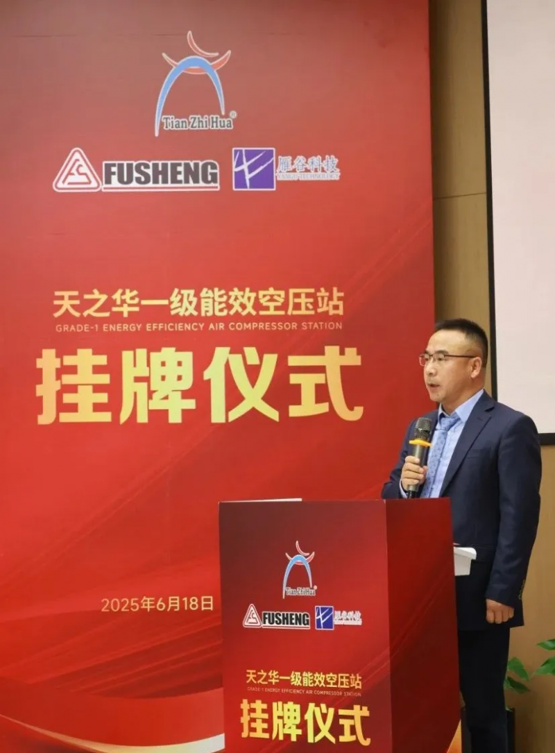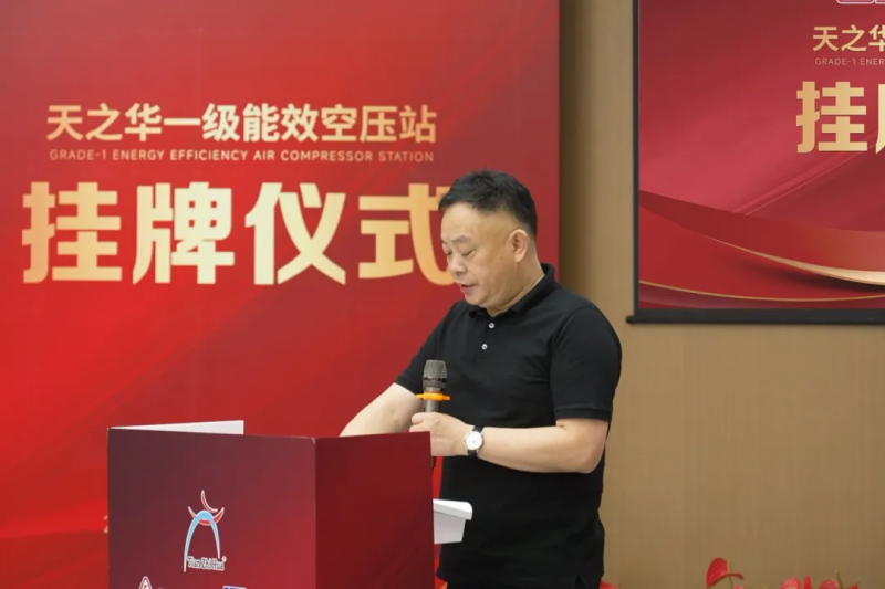 仪式上,天之华董事长董坚强首先致辞,他表示这四座一级能效空压站的建成,不仅体现了天之华在能效方面上的突破,更彰显了与复盛集团战略合作的丰硕成果。