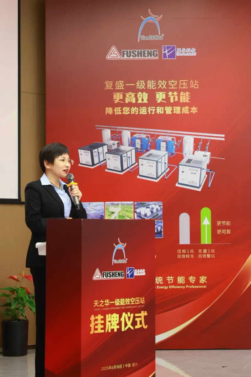 复盛集团代表金艳女士在发言中特别强调了与天之华的战略合作,这四座一级能效空压站正是基于对绿色发展的理念诠释。