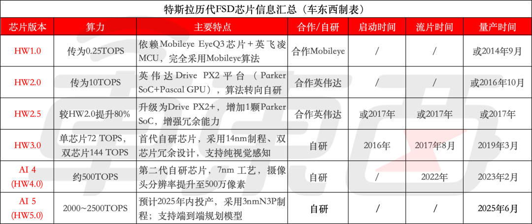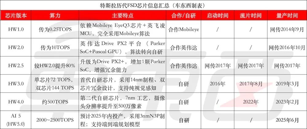 特斯拉历代自动驾驶芯片信息