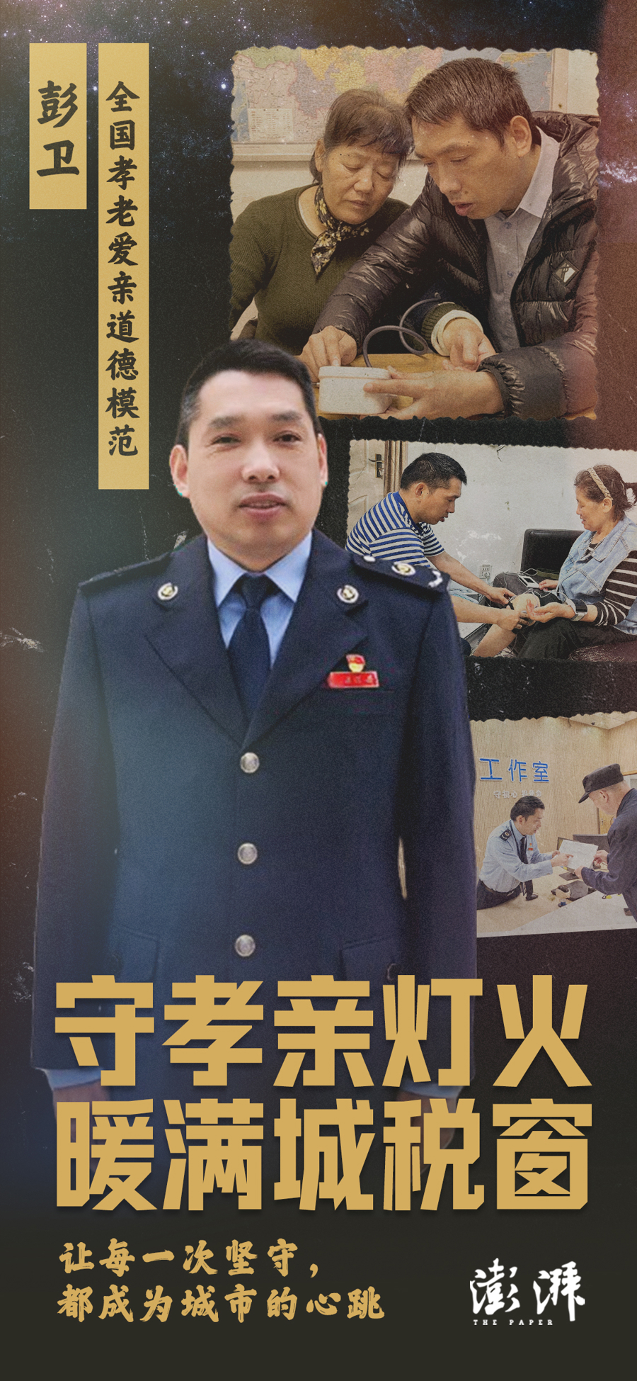 彭卫是国家税务总局上海市奉贤区税务局第一税务所三级主办。他用科技跨越千里尽孝,为湖北父母定制“智能监护系统”,通过可视化摄像头守护安全,智能手环监测健康,适老化改造让老宅更安全,以匠心守护上海小家,十年如一日为岳母按摩泡脚,自学理疗助其康复,暴雨天背岳母就医汗透衣背,他将军旅情谊化为家族担当,抚养侄女成才、引导叛逆外甥攻读研究生。