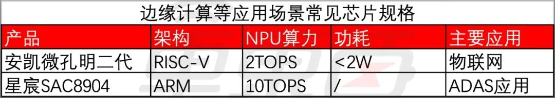 这两类产品均功耗相对较低,支持2-10TOPS算力,具备不错的ISP能力和NPU算力,在ADAS中的自动泊车、驾驶员监测系统(DMS)等场景都可以发挥作用。