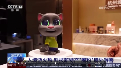 视频中售价1499元AI电子宠物“汤姆猫”,成了抢手货,据说“最后一只现货已被路过的客人抱走了”。此外,这里还有会自动追拍的“哈浮飞行相机”,能改善睡眠的“智能安睡仪”,帮助银发族登山的“外骨骼”,还有能“调近视度数”的智能游泳眼镜。与其说是购物点,这里更像一个充满未来感的“杭州前沿科技体验馆”。