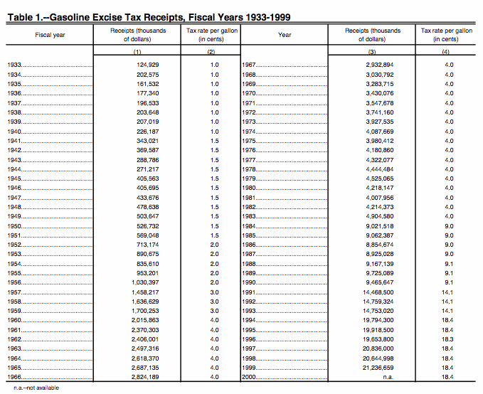 1993年,克林顿总统将汽油税提高4.3美分。1997年,他又把汽油税提高0.1美分,并再次将汽油税转为公路信托基金专用。