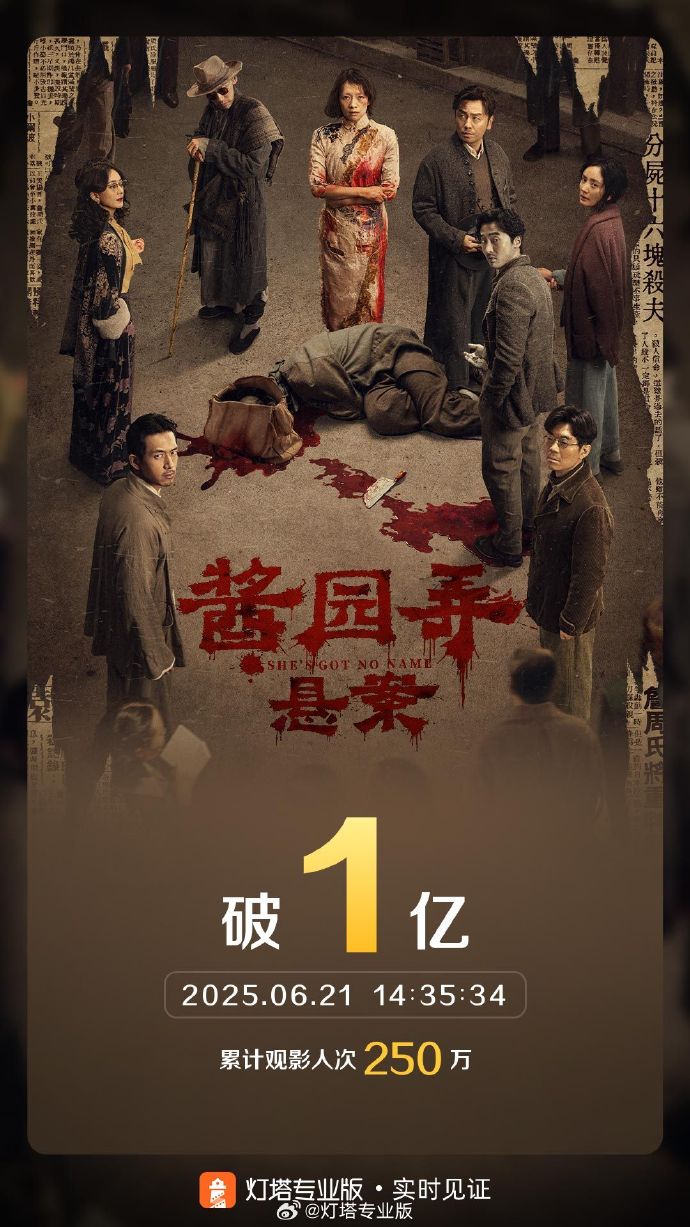 据灯塔专业版实时数据,截至6月21日14时35分,影片《酱园弄·悬案》票房突破1亿元。