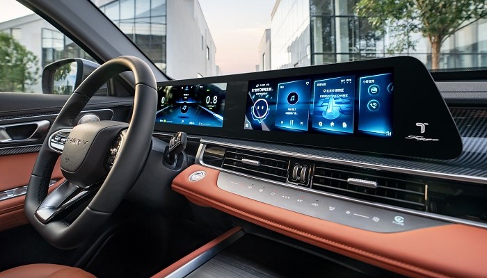 车内配备悬浮式液晶仪表与15.6英寸中控屏,搭载高通骁龙8155芯片,支持多种手机互联功能(HUAWEI HiCar/Carlink/CarPlay)。内饰新增棕、灰两种配色及胡桃木纹饰板。主要配置包括L2+级驾驶辅助、540度全景影像、驾驶员疲劳监测、电动尾门、前排座椅通风/加热/按摩、50瓦手机无线充电、12扬声器索尼音响及256色氛围灯。