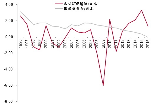 那么,十年期国债收益率与名义GDP增速之间的关系,在日本、欧盟或印度又是怎样的呢?不妨通过下面三张图来予以说明。