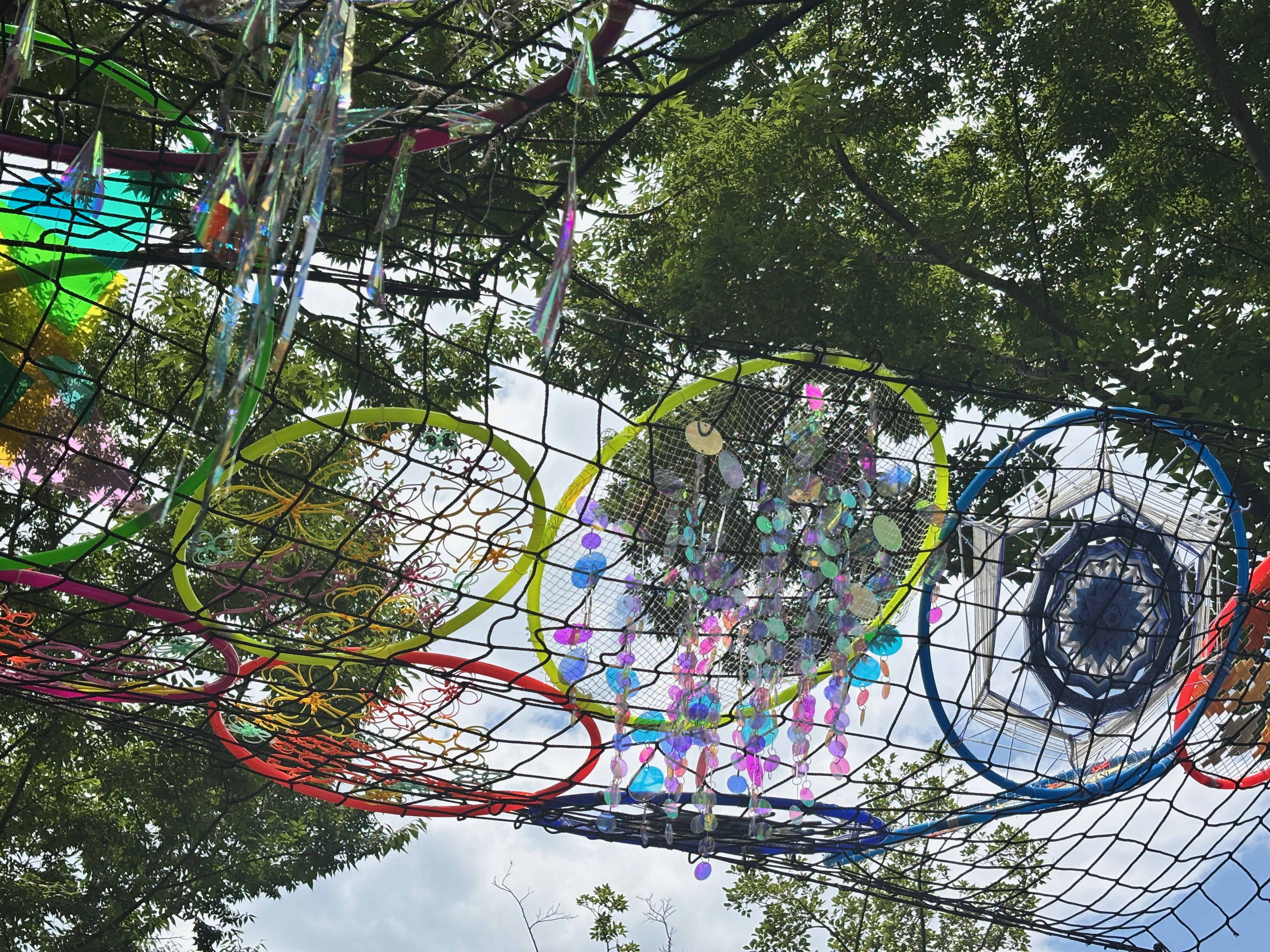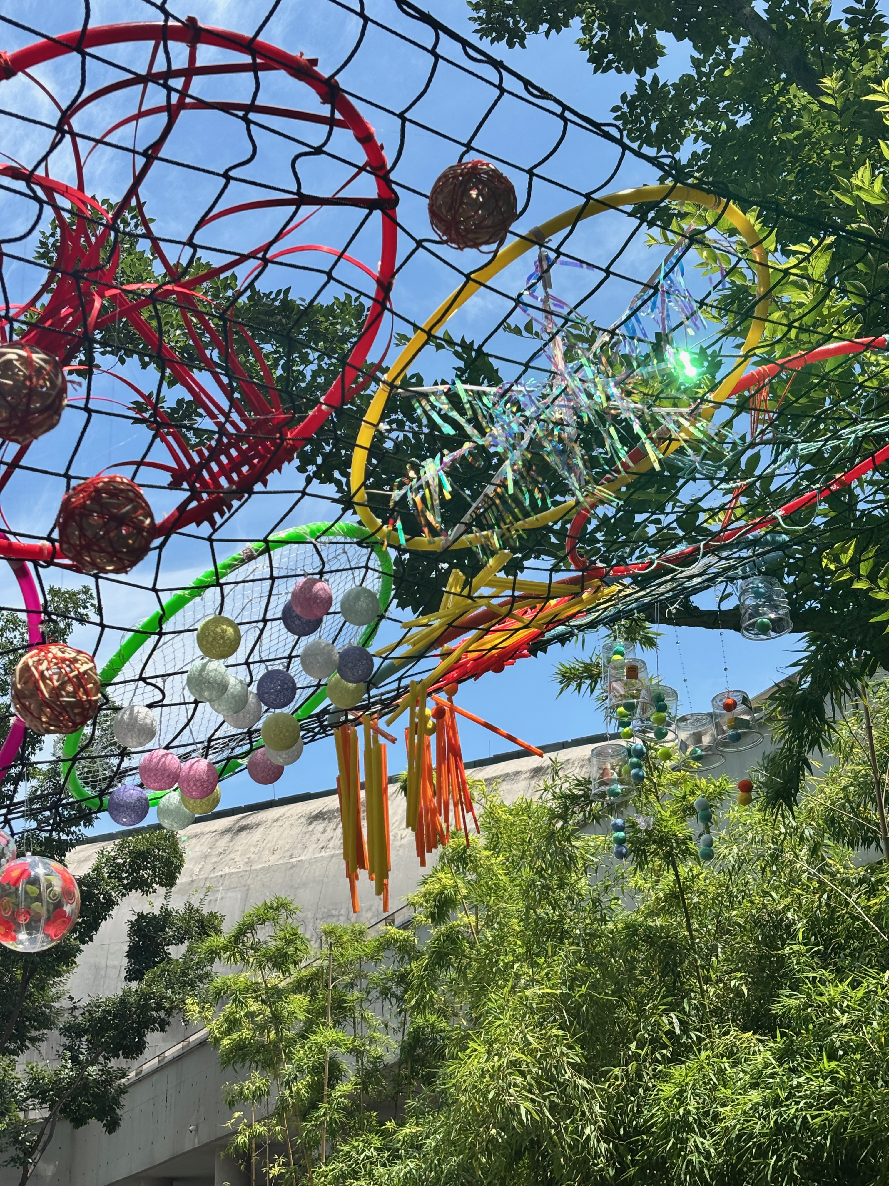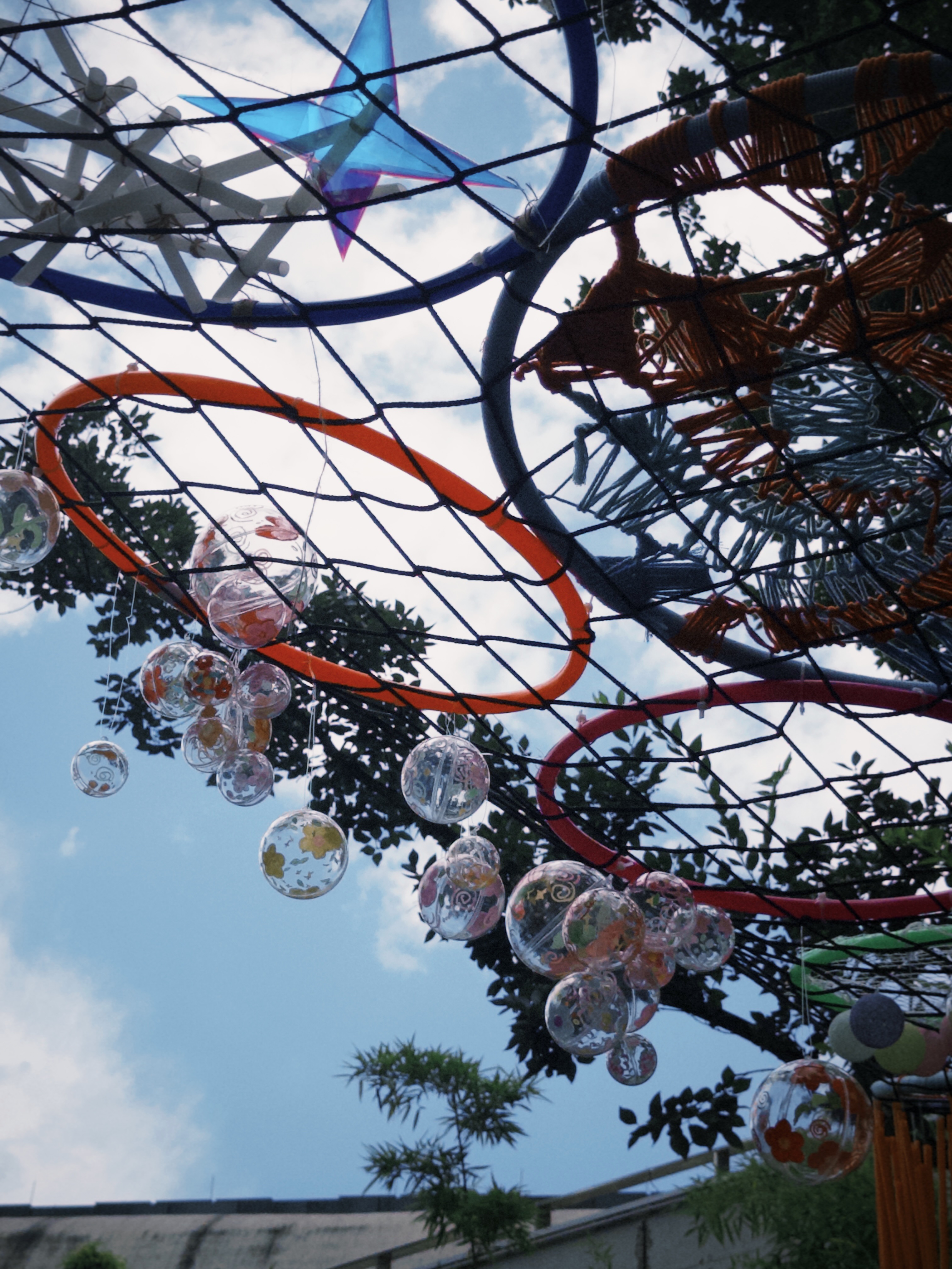 据了解,此场展览是棒集漫游艺术季“漫生活,漫艺术”主题系列活动之一。该展以呼啦圈为创意载体的艺术盛宴,不仅呈现出 “艺术天幕”的震撼视觉效果,更彰显了环境设计专业产教融合的创新实践成果,为城市公共空间注入灵动的艺术气息。