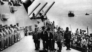 密苏里号相比其他战列舰最大的荣誉就是在其甲板上举行的日本投降签字仪式,这让密苏里号狠狠的硬了一把。也就是因为这个,战争结束后,没有像其他几个同伴一样被立刻解除现役。朝鲜战争二次战役时,密苏里号还在朝鲜的兴南港掩护美海军陆战一师的撤离。