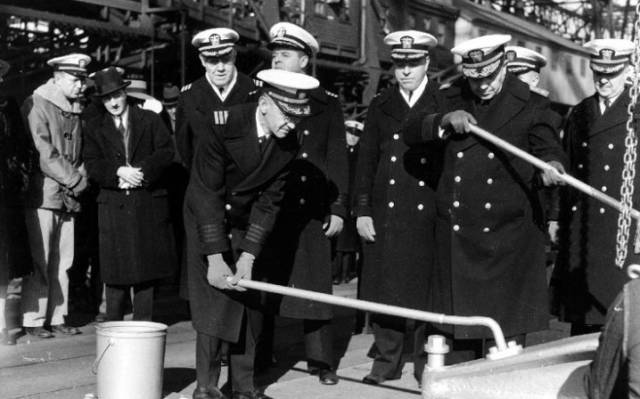 ▲1941年1月6日,在纽约海军造船厂举行了密苏里号龙骨铺设仪式