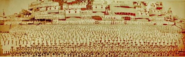 ▲密苏里号1944年下水时全体舰员合照