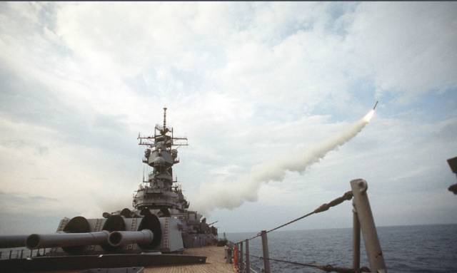 朝鲜战争结束后的1955年,密苏里号也没逃过宿命,被解除了现役。直到1981年里根政府上台,为了对抗苏联的逼人态势,提出了六百舰队(600-ship Navy)扩军计划,退役了26年的密苏里号被拖了出来,修复改造。老式的东西拆了一大堆,把什么战斧巡航导弹,密集阵近防炮,鱼叉反舰导弹一股脑的全安了上去,又更新了雷达火控。这个老家伙换了一口钢牙又出来咬人了。