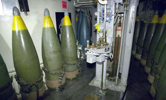 ▲密苏里号的炮塔内部