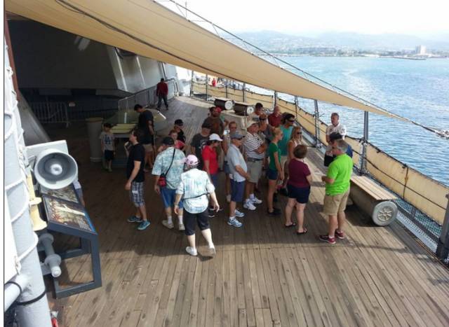 您还可以通过电子邮件(chineseinfo@ussmissour.org)预约比较全面性质的讲解。成人(13岁或以上) 47美元;儿童(10 12岁) 33美元;婴幼儿(0 10岁以下)因安全原因不能参加。预约的游客可以享受到90-120分钟的专业讲解导游,而且活动的范围扩大到甲板下三层和上五层的区域,能够更全面的了解密苏里号。