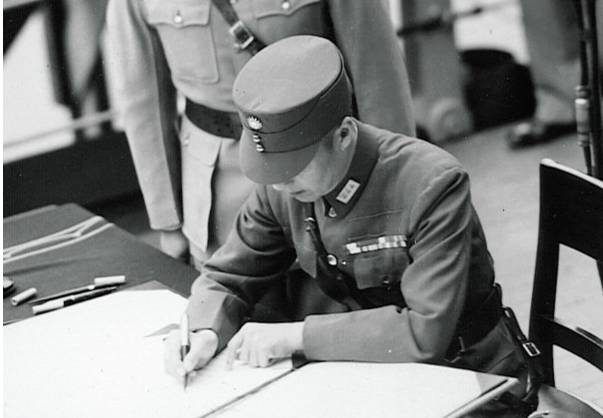 ▲历史性的时刻,徐永昌将军代表中国在日本对盟军投降书上签字
