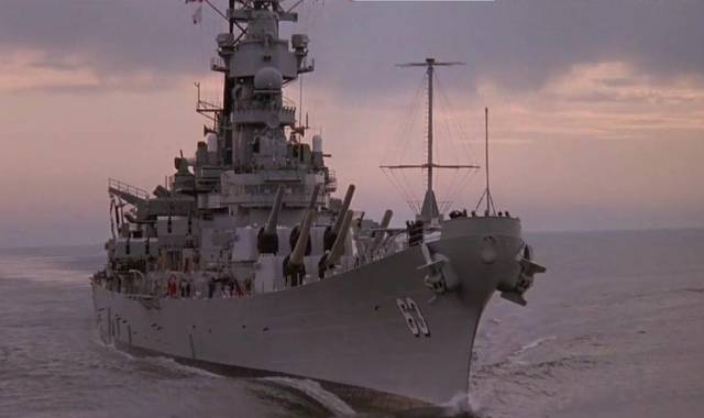 ▲《潜龙轰天》中的密苏里号战列舰,密苏里号退役前被劫持过,这噱头够吸引人