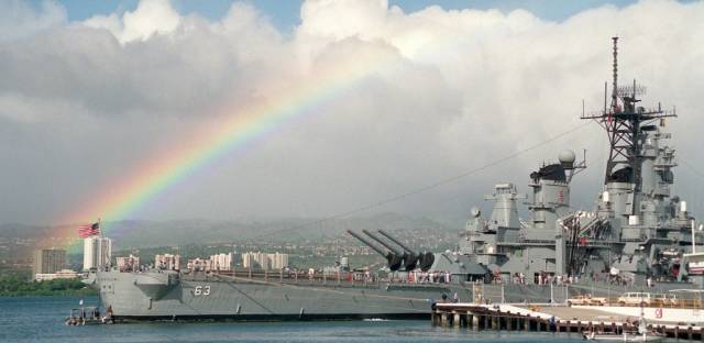退休后的的密苏里可是真正的闲了好久,一直到1998年,挪动到了太平洋舰队的母港珍珠港,停泊到了福特岛,舰首不远的地方就是日军偷袭珍珠港之中被击沉的亚利桑那号战列舰纪念馆。