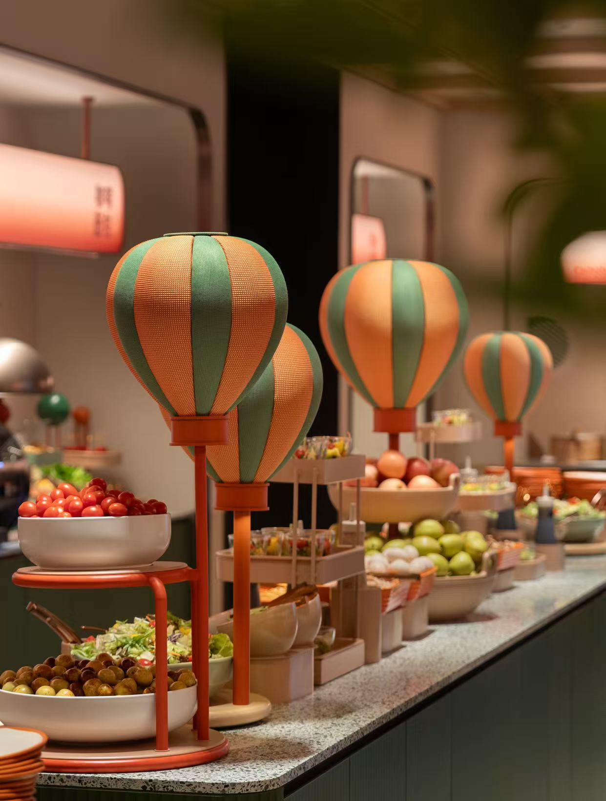 客房里放置的桔子软糖,一口爆汁,是疲惫旅程后收获的一点“甜”;小圆饼香脆可口,补充能量的同时又健康低卡,可以无负担轻松“炫”;甜橙精油洗护更是“心头好”,伴着浴室内的水汽氤氲,治愈系甜橙果香瞬间钻进鼻腔,有什么比桔子味的澡更让人放松呢?早餐也做了大胆创新,分碳水快乐/咖啡面包/低脂健康区三大功能分区,自制一份酸奶碗配时蔬三明治,再来一杯“桔铁”咖啡,这口健康早餐能量加满。