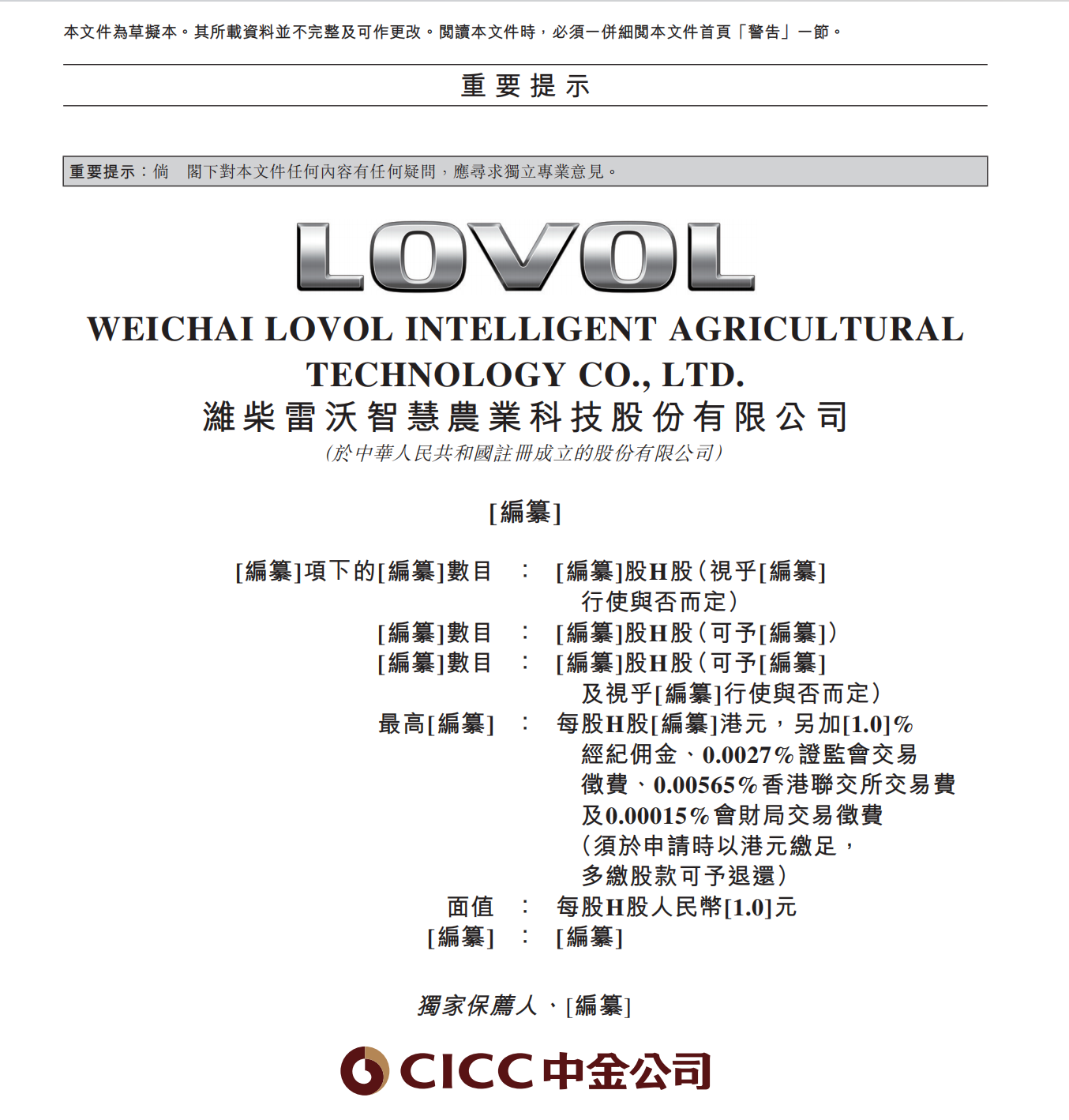 近日,潍柴动力发布公告称,公司拟分拆下属子公司潍柴雷沃智慧农业科技股份有限公司(下称潍柴雷沃)至香港联交所主板上市,潍柴雷沃向香港联交所递交了首次公开发行境外上市外资股(H股)并在香港联交所主板上市的申请。