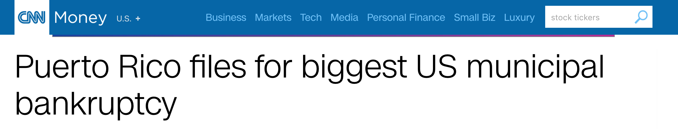 【波多黎各申请破产 700亿美元债款成史上最大市政破产】由于无法偿还700亿美元债款,波多黎各申请破产,这成为美国史上最大市政破产案,数额远高于2013年底特律政府的180亿美元破产。