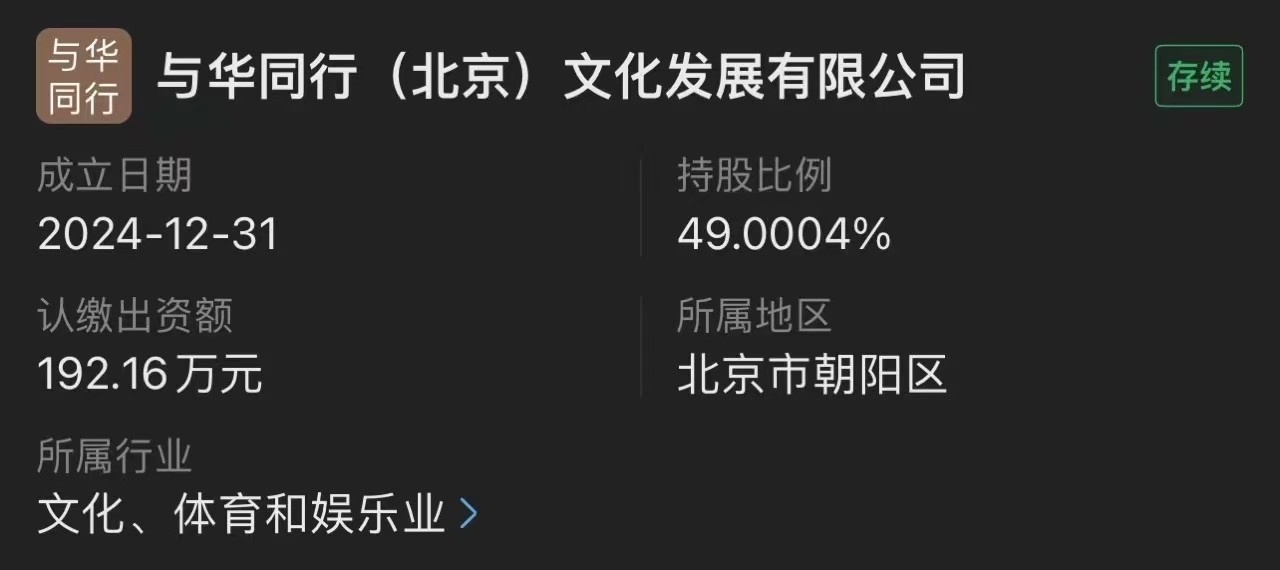 但要追溯WKUKU的爆红节点,主要有两个。一是2024年12月31日Lestvan与乐华娱乐关联公司天津壹华,合资成立了与华同行公司,分别持股49%和51%,合资公司法定代表人正是乐华娱乐执行董事兼总裁孙一丁。