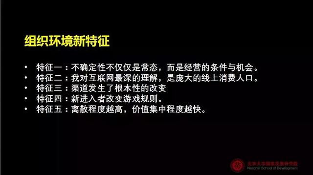 第一个我想告诉各位,在今天机会来源于变化,机会不再来源于投入。如果你去投入,资源的投入或者是你个人的努力,你就认为会有机会。有些人跟我讲我比任何人都努力,我可能还不能先接受这个观点,你得先比任何人变得更多,我先接受这个观点,这是我们外部第一个很重要的特点。