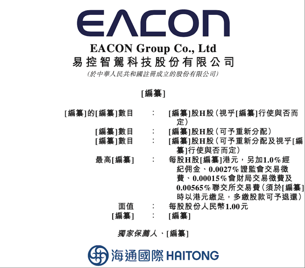 车东西6月26日消息,昨晚,易控智驾科技股份有限公司(简称:易控智驾)向港交所主板提交上市申请,海通国际为其独家保荐人。