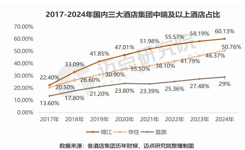 财报数据显示,头部酒店集团中端及以上酒店规模占比持续攀升,中高端酒店已成为规模增长主力军。