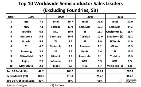 IC Insights报告:20多年来芯片供应商王座有望首次交替